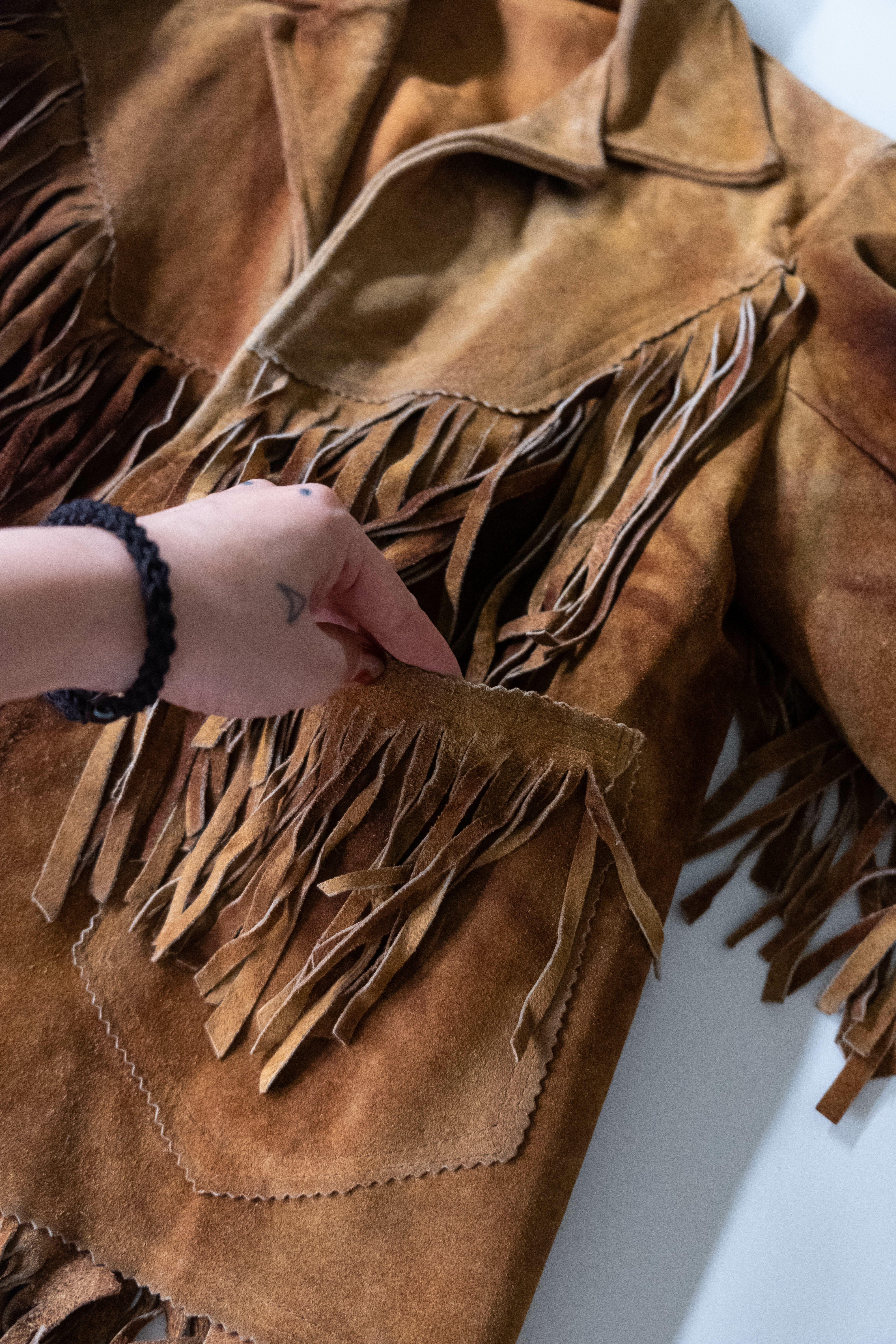 • 商品敘述 - VAZQUEZ 1970's麂皮流蘇外套。
